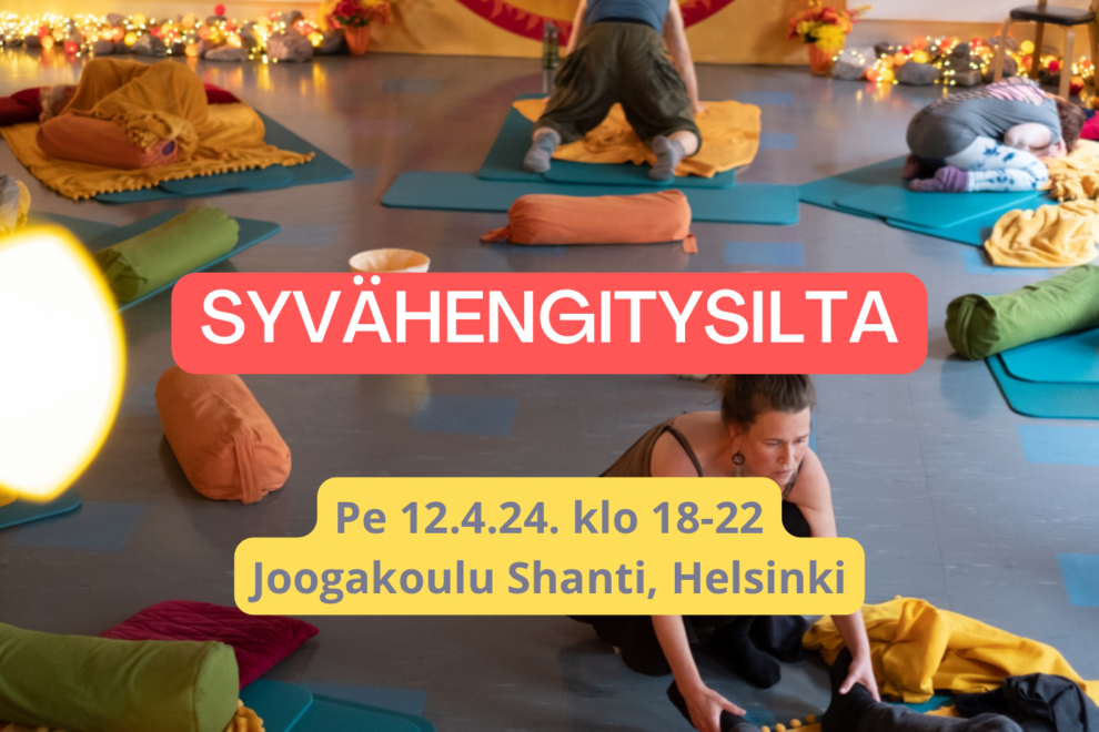 Perjantaina 26.4. klo 18.00-20.00 – Mia Maljojoki Meillä kaikilla on isoja ja pieniä pelkoja, omasta elämästä – terveys, työasiat, rakkaus… ja sitten on läheisten asioita ja yleismaailmallisia. Pelot pidättelevät meitä usein ja aiheuttavat lukkoja keholle. Niistä voi syntyä isojakin vaivoja. Tällä tunnilla teemme fyysisiä ja hengitysharjoituksia kehon rentouttamiseen ja chakrojen avaamiseen. Tervetuloa mukaan.Aiempaa kokemusta et…